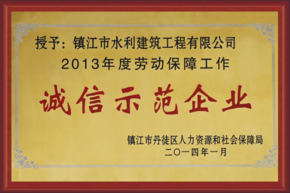 公司被評為重合同守信用企業(yè)、江蘇省水利安全生產標準化二級單位、AAA級資信企業(yè)、誠信示范企業(yè)、全國工程建設用戶滿意施工企業(yè)。